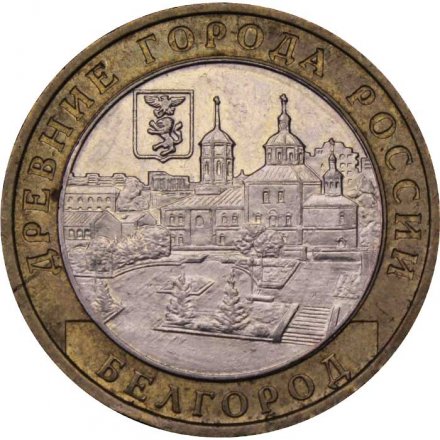 Реверс: изображение панорамы города, вверху слева – герб города Белгорода, по окружности – надписи: вверху – «ДРЕВНИЕ ГОРОДА РОССИИ», внизу – «БЕЛГОРОД».