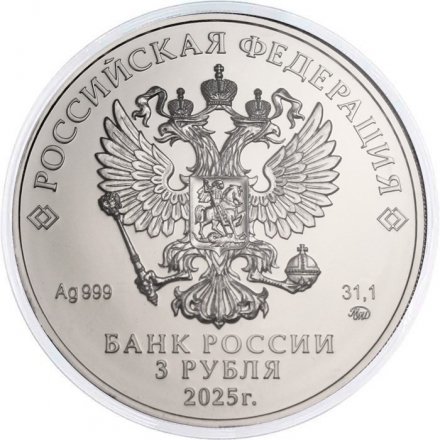 Россия 3 рубля 2025 год - Георгий Победоносец ММД